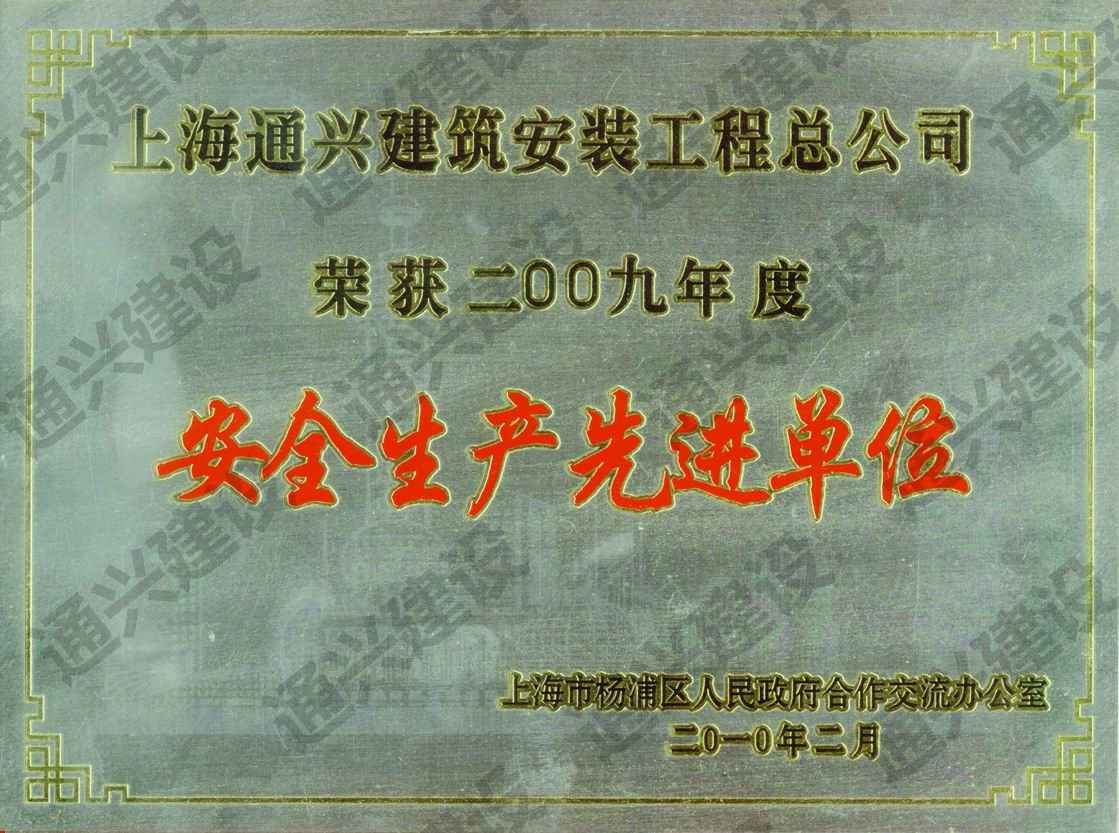 2009年度 安全生产先进单位